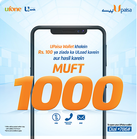Prepaid Ufone load of Rs. 100 or greater must be purchased to avail the offer.