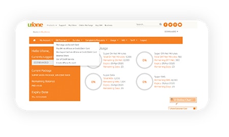From the Main Menu Click My Ufone
