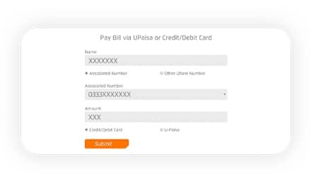 From the Menu Select Pay Bill via UPaisa or Credit/Debit Card